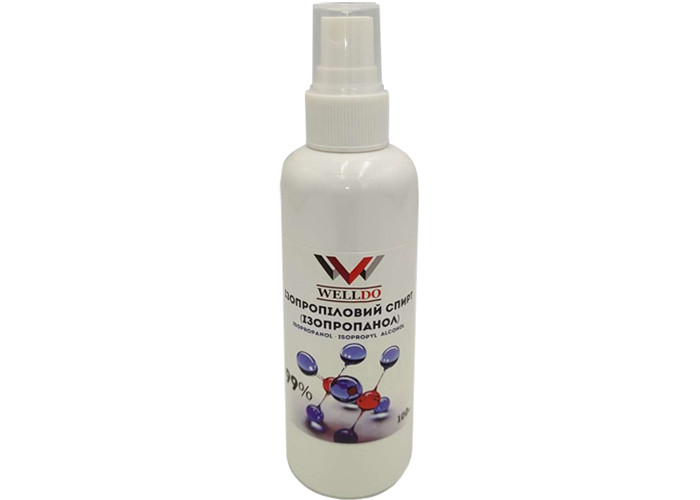 Очиститель, антисептик, растворитель, спирт изопропиловый (изопропанол) 99,9% WELLDO ISOP100 100мл. Флакон с распылителем.
