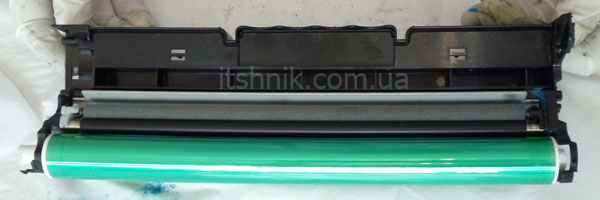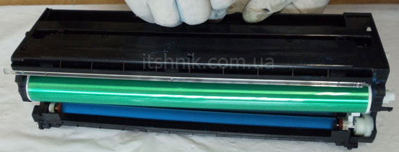 Після цього повертаємо на місце фотоциліндр. Зібраний таким чином відходний відсік картриджа прибираємо в темне місце, або прикриваємо зверху чимось темним, щоб не допустити засвічування фотобарабана, поки ми будемо займатися іншим - тонерним - відсіком картриджа.