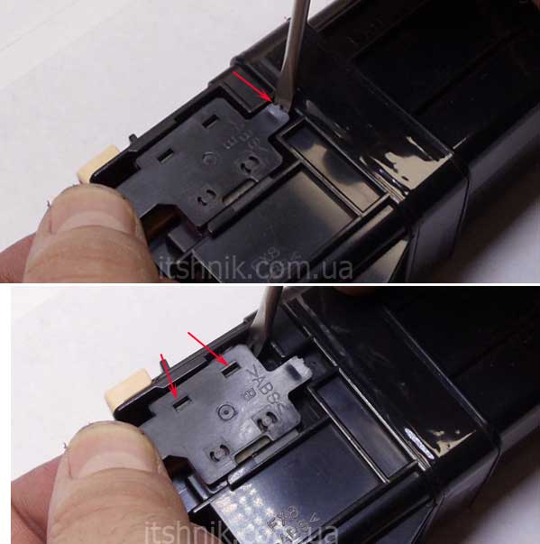 Планку з чіпом потрібно трохи підчепити вгору в місцях зчеплення з замками: