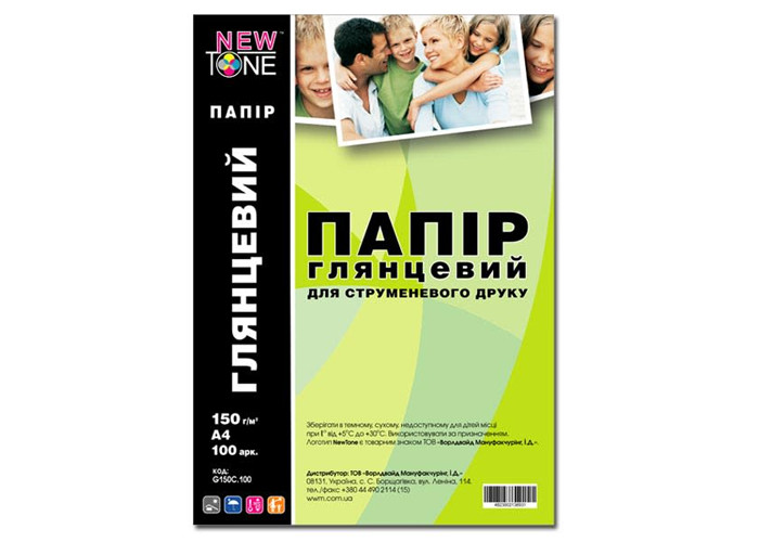 Фотобумага глянцевая NewTone (G150C.100) формат A4, плотность 150г/м2, пачка 100 листов. Бумага односторонняя для струйной печати водорастворимыми чернилами.