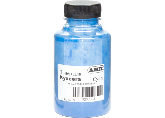Синий тонер АНК (3202802) Cyan 70г для заправки картриджей Kyocera TK-5140C, TK-5150C, TK-5220K, TK-5230K. Для цветных принтеров Kyocera Ecosys P6035, P6135, M6030, M6130, M6230, M6530, P5021, M5521, M5521, M5526.