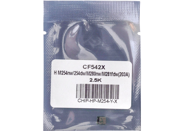 Желтый чип увеличенного ресурса (2500 страниц) JYD-HCF542X1-FSH для заправки тонер-картриджа HP 203X, CF542X Yellow. Для цветных принтеров серии Hewlett-Packard Color LaserJet Pro M254, M280, M281.