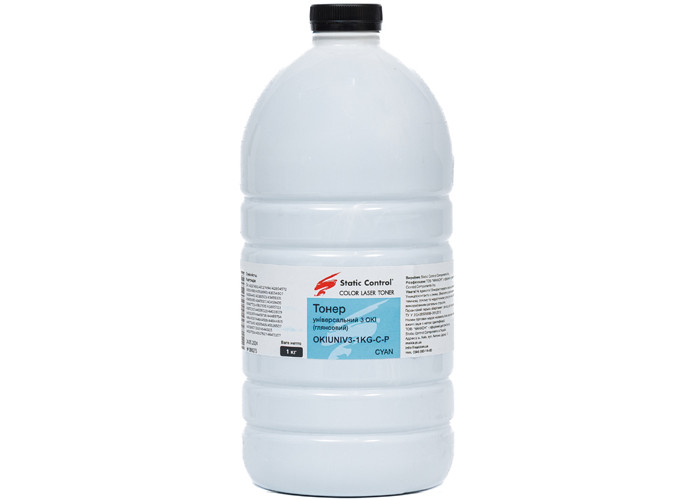 Тонер Static Control для Okidata C331, C510, C610, C712, C801, C822, C833, C841, C931, C5540 (OKIUNIV3-1KG-C-P) Cyan 1кг