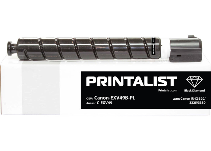 Туба с тонером PRINTALIST Canon-EXV49B-PL - аналог черного картриджа Canon C-EXV49 (8524B002) Black. Для использования в цветных принтерах формата А3: imageRUNNER C3320, C3325, C3330, C3520, C3525.