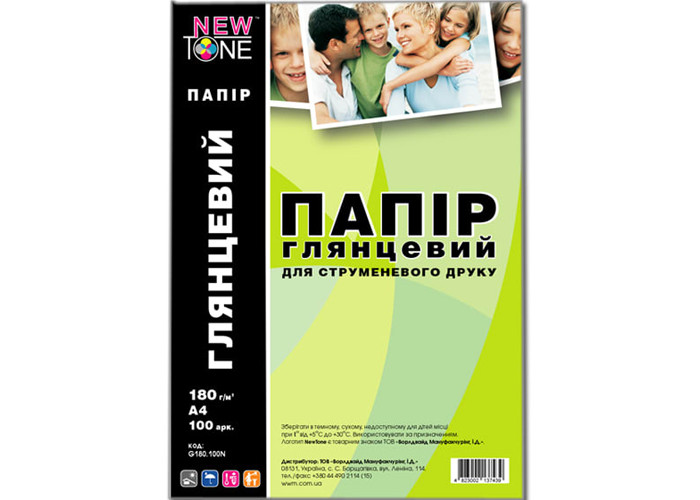 Фотобумага глянцевая NewTone (G180.100N) формат A4, плотность 180г/м2, пачка 100 листов. Бумага односторонняя для струйной печати водорастворимыми чернилами.