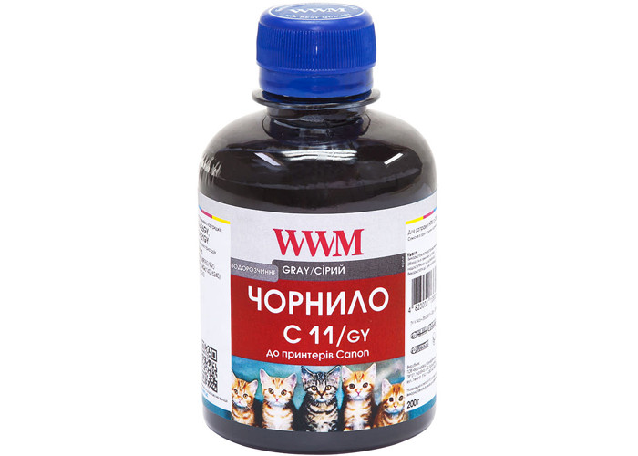 Серые водорастворимые чернила WWM (C11/GY) GRAY 200г для заправки картриджей Canon CLI-426GY, CLI-521GY для принтеров Canon PIXMA MG6140, MG6240, MG8140, MG8240, MP980, MP990.