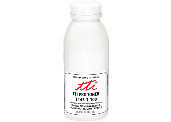 Универсальный тонер TTI PRO T143-1-100 (100г) для принтеров Kyocera ECOSYS M3860, P3260, M2030DN, M2035DN, M2135DN, M2530DN, M2535DN, M2540dn, M3040DN, M3145, M3540DN, M3550IDN, M3645, P2035D, P2040, P2135D, P3045DN, P3050DN, P3055DN, P3060DN, P3145, P3150, P3155DN, P2235, M2040, M2635DN, M2640IDN, FS-1000, FS-1010, FS-1016MFP, FS-1018, FS-1020, FS-1024MFP, FS-1025MFP, FS-1028I, FS-1030, FS-1030D, FS-1035, FS-1050, FS-1060, FS-1061, FS-1100, FS-1110, FS-1116, FS-1118, FS-1120D, FS-1125, FS-1128, FS-1130MFP, FS-1135, FS-1300, FS-1300D, FS-1320D, FS-1320DN, FS-1325, FS-1350, FS-1370DN, FS-1700, FS-1750, FS-1800, FS-1900, FS-1920, FS-2000, FS-2010, FS-2020, FS-2100DN, FS-3040MFP, FS-3140, FS-3700, FS-3750, FS-3800, FS-3820, FS-3900, FS-3920, FS-4000, FS-4020, FS-4100DN, FS-4200DN, FS-4300DN, FS-600, FS-6020, FS-6025, FS-6030, FS-6525, FS-6530, FS-6700, FS-680, FS-6950, FS-6950DN, FS-6970DN, FS-7000, FS-720, FS-800, FS-820, FS-850, FS-9000, FS-9100, FS-9120, FS-9130DN, FS-920, FS-9500, FS-9520.