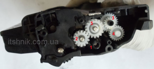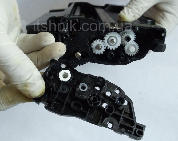 Якщо в процесі розборки картриджа ви знімали дрібні шестерні під лівою боковою кришкою, то встановлювати їх на місця потрібно в зазначеній послідовності: