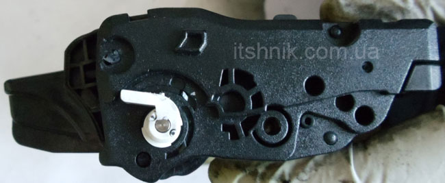 Зверніть увагу на положення "важеля" осі фотобарабана після зборки: