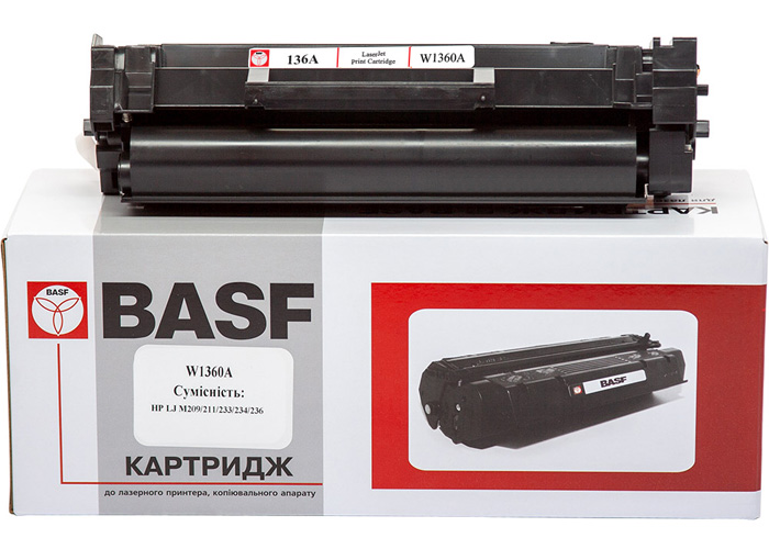 Совместимый картридж с чипом BASF-KT-W1360A для принтеров Hewlett-Packard LaserJet M211, M212, M236. Аналог тонер-картриджа HP 136A, W1360A.