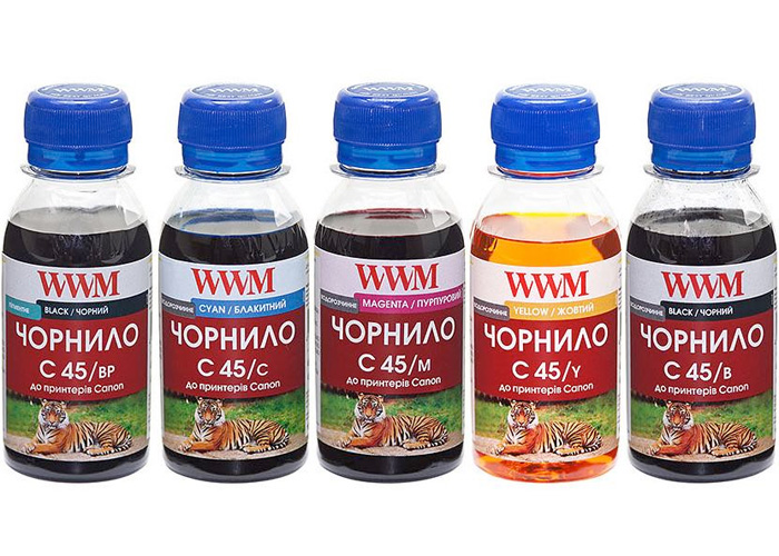 Комплект чернил WWM (C45SET-5) 5x100ml для заправки картриджей Canon PGi-450, CLi-451, CL-94, PGi-470. В набор входит, в том числе, флакон черных пигментных чернил С45/BP.