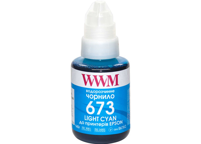 Голубые водорастворимые чернила WWM E673LC (C13T67354A) Light Cyan 140г, для заправки принтеров серии Epson L800, L805, L810, L850, L1800.