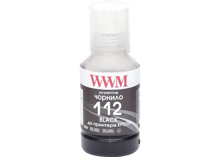 Черные пигментные чернила WWM E112BP (140г) Black для заправки принтеров Epson L11160, L15150, L15160, L15180, L6490, L6550, L6570, L6580, M15140, M15180.