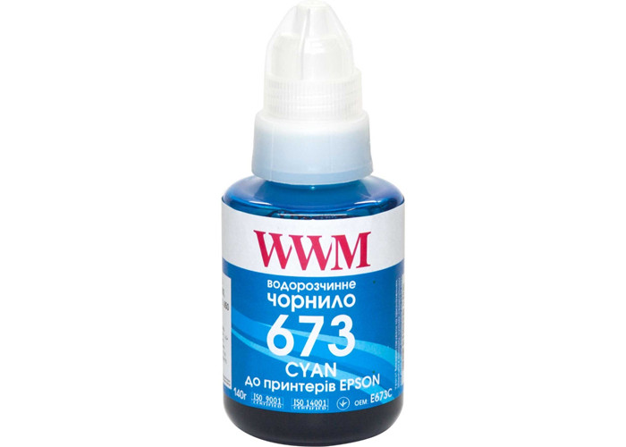 Синие водорастворимые чернила WWM E673C (140г) C13T67324A Cyan для заправки принтеров Epson L800, L805, L810, L850, L1800.
