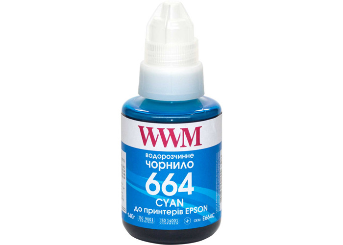 Синие водорастворимые чернила WWM E664C Cyan (140г) для заправки принтеров EPSON L100, L110, L120, L121, L130, L1300, L132, L1455, L200, L210, L220, L222, L300, L3050, L3060, L3070, L312, L350, L355, L362, L364, L365, L366, L382, L386, L455, L456, L486, L550, L555, L566, L605, L655.