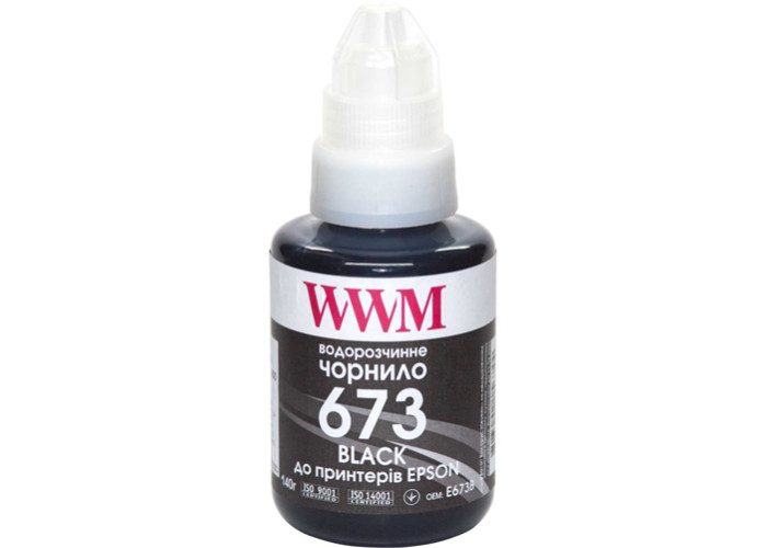 Водорастворимые черные чернила WWM E673B 140г (аналог C13T67314A Black) для заправки принтеров Epson L800, L805, L810, L850, L1800.
