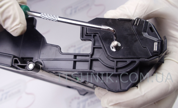 Очищений (при необхідності - новий) ролик переносу повертаємо в посадочне місце, фіксуємо вал «до клацання».