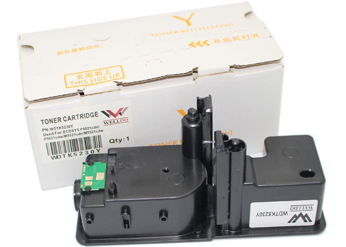 Желтый картридж WELLDO WDTK5230Y - аналог тубы с тонером TK-5230Y (1T02R9ANL0) Yellow для цветных принтеров Kyocera ECOSYS P5021, M5521.