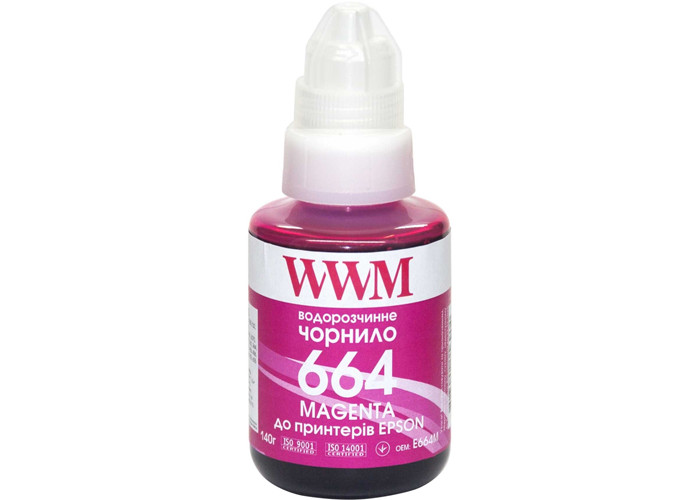 Красные водораствормые чернила WWM E664M Magenta (140г) для заправки принтеров Epson L100, L110, L120, L130, L200, L210, L300, L312,