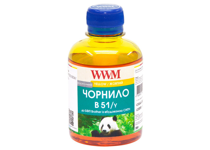 Чернила водорастворимые желтого цвета WWM (B51/Y) 200г Yellow для цветных струйных принтеров со встроенной СНПЧ Brother DCP-T300, DCP-T500W, DCP-T700W.