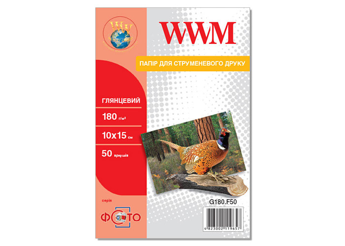 Фотобумага глянцевая WWM (G180.F50) 50 листов, формат 10х15см, плотность 180г/м2, для струйных принтеров на водорастворимых чернилах.