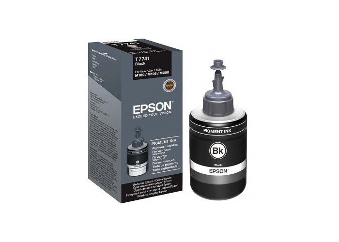Чернила Pigment Ink C13T77414A Black (контейнер с пигментными чернилами) для заправки монохромных принтеров Epson M100, M105, M200, M205 и цветных принтеров L605, L655, L1455.