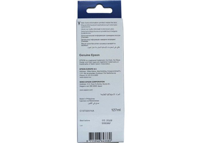 Контейнер с оригинальными черными чернилами Epson 101 Black (C13T03V14A) для заправки принтера Фабрика печати L4150, L4160, L6160, L6170, L6190, L4167, L14150.