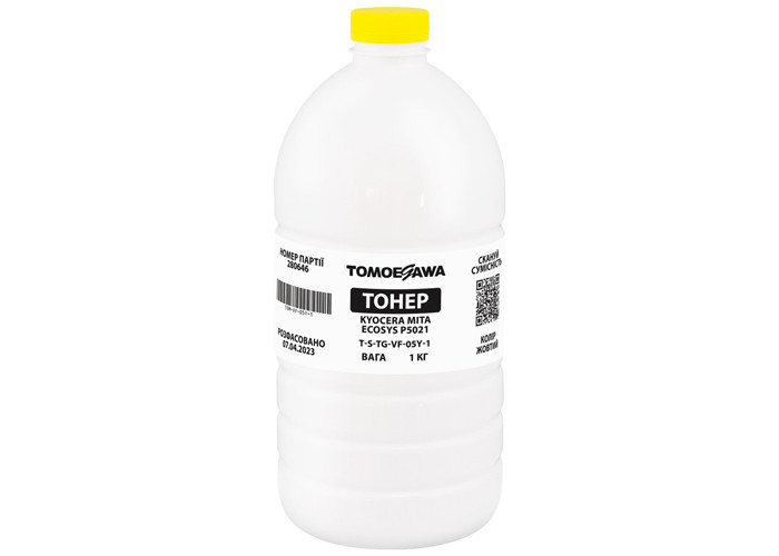 Желтый тонер Tomoegawa (VF-05Y-1) Yellow 1кг для заправки картриджей к принтерам Kyocera Ecosys P5021, P5026, M5521, M5526, PA2100, MA2100. Этот тонер подойдет для заправки картриджей TK-5220Y, TK-5230Y, TK-5240Y, TK-5430Y, TK-5440Y Yellow.