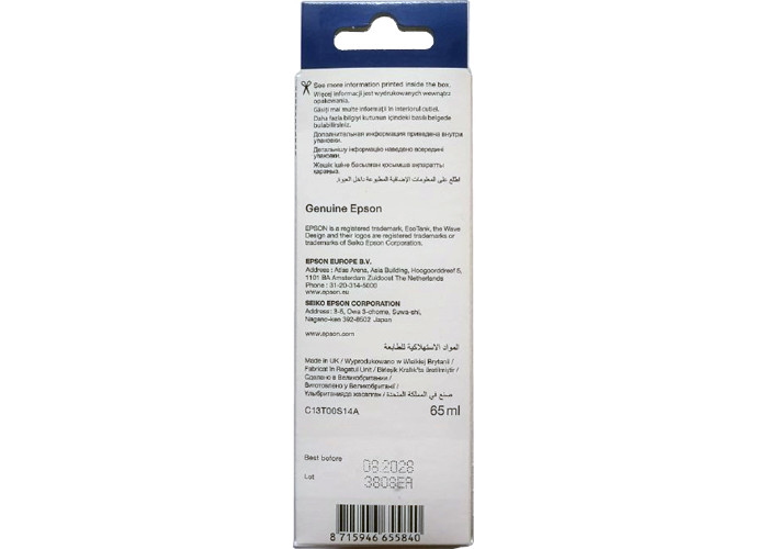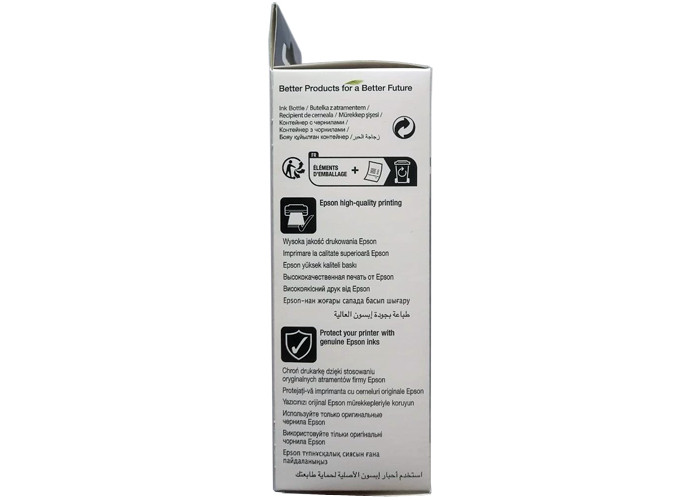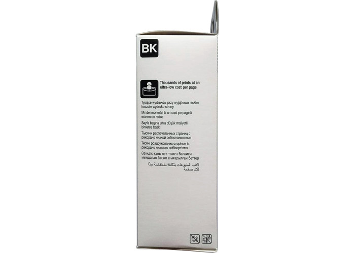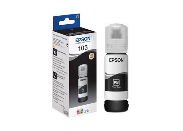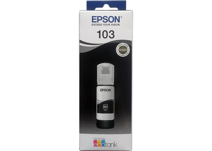Оригинальный контейнер с черными чернилами Epson 103 Black (C13T00S14A) для заправки струйных принтеров "Фабрика печати" серии Epson L1100, L1200, L3100, L3101, L3110, L3150, L3200, L1110, L3151, L3156, L3160, L3500, L5100, L5190, L5200, L5500.