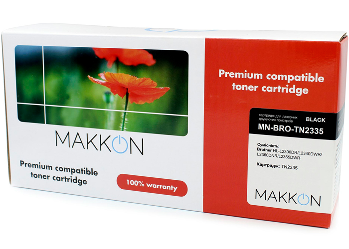 Картридж с тонером Makkon MN-BRO-TN2335 (аналог TN-2335) для принтеров, МФУ серии Brother DCP-L2500, L2520, L2540, L2560, HL-L2300, L2340, L2360, L2365, L2380, MFC-L2700, MFC-L2720, MFC-L2740.