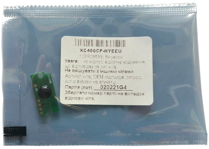 Желтый чип JYD-XerC405Y Yellow на 8000 копий для заправки тонер-картриджей Xerox 106R03533 Yellow. Чип совместим с цветными принтерами XEROX VersaLink C400, C405.