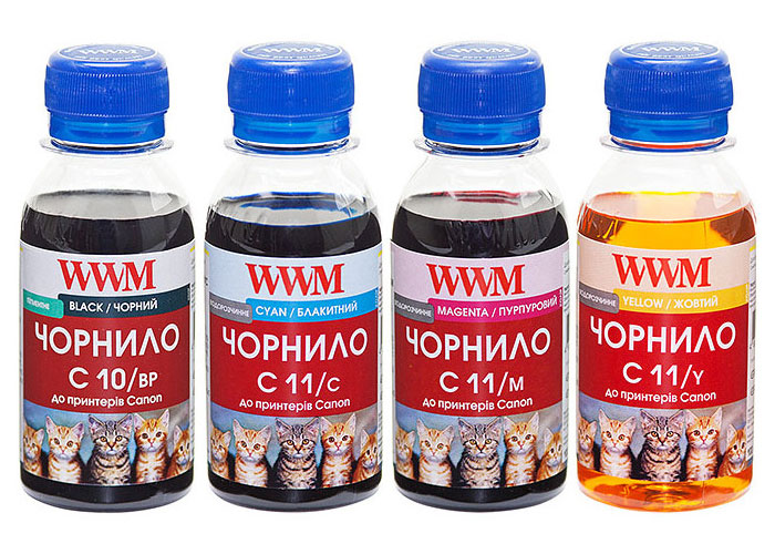 Чернила (пигментные / водорастворимые) WWM (C10/11SET4-2) 4x100мл для заправки картриджей Canon PG-510, PG-512, CL-511, CL-513.