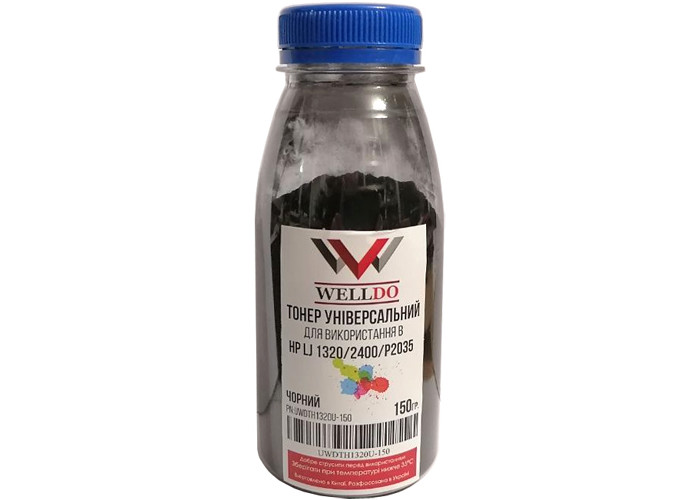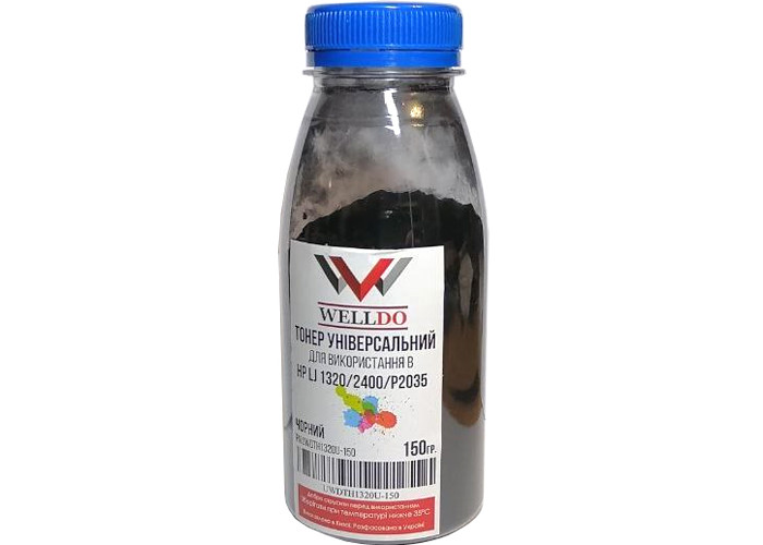 Тонер Welldo UWDTH1320U-150 (150г) универсальный для заправки принтеров Canon i-SENSYS LBP-1120, LBP-1210, LBP-2900, LBP-3000, LBP-3200, LBP-3300, LBP-3360, LBP-6300DN, LBP-6650dn, LBP-800, LBP-810, LBP-6310dn, LBP-6670dn, LBP-6680x, LBP-3210, LBP-1110, MF416dw, MF418, MF419, MF411, MF3110, MF3220, MF3228, MF3240, MF5630, MF5650, MF5750, MF5770, MF5840dn, MF5880DN, MF5940dn, MF5980dw, MF6140dn, MF6180dw, Hewlett-Packard LaserJet 1000, 1010, 1012, 1015, 1018, 1020, 1022, 1100, 1160, 1200, 1220, 1320, 2100, 2200, 2300, 2410, 2420, 2430, 5200, P2014, P2015, P2035, P2055, P3005, P3015, M1319, M2727, M3027, M3035.