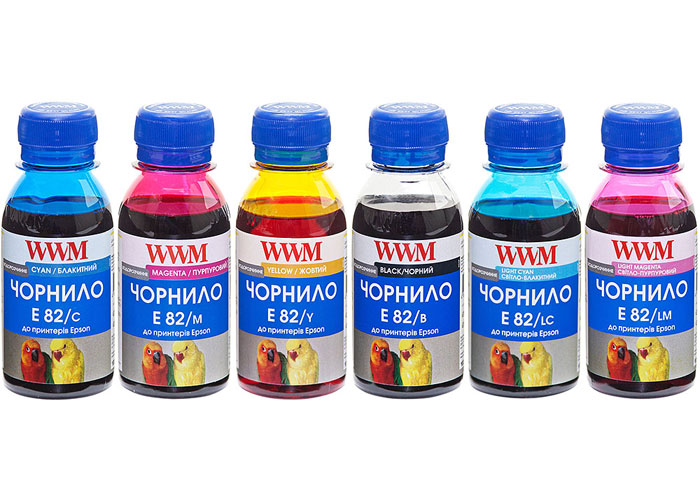 Чернила WWM (E82SET-2) 6х100мл водорастворимые. Предназначены для заправки фотопринтеров Epson ARTISAN 1430, 725, 730, 810, 835, Stylus Photo 1410, 1500W, P50, PX660 PREMIUM, PX720WD, PX730WD, PX820FWD, PX830FWD, R270, R290, R295, R390, RX590, RX610, RX615, RX690, T50, T59, TX650, TX659, TX700W, TX710W, TX800FW.