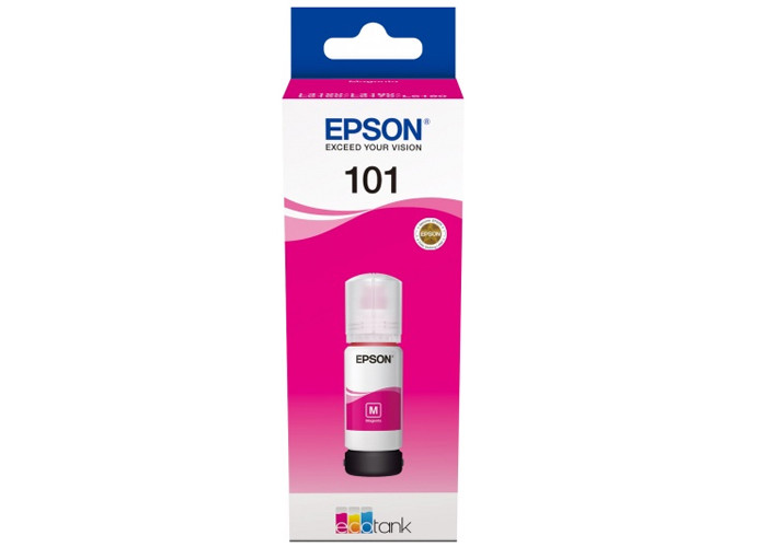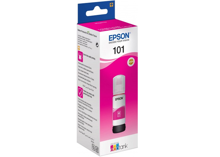 Оригинальные красные чернила Epson 101 (C13T03V34A) Magenta для заправки принтера "Фабрика печати" L4150, L4160, L6160, L6170, L6190, L4167, L14150. Контейнер с чернилами на основе красителя.