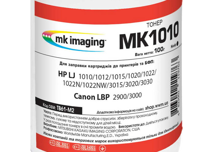 Тонер Mitsubishi MK1010 (TB61-M2) во флаконе весом 100 грамм. Рассчитан на одну заправку картриджа. Ресурс печати - до 2000 страниц.