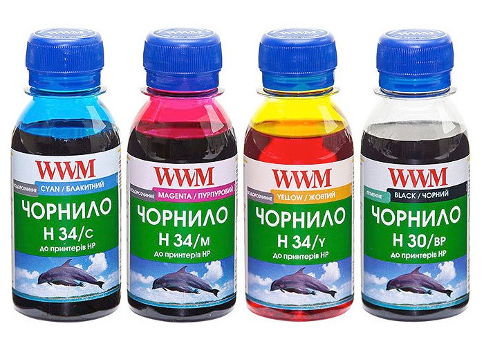 Универсальные чернила WWM (H35SET-2) 4x100мл для заправки картриджей семейства Hewlett-Packard №21, №121, №129, №130, №131, №132, №140, №22, №134, №135, №136, №141. Черный цвет - чернила пигментные, синий / красный / желтый - чернила водорастворимые. 4 флакона по 100 мл.