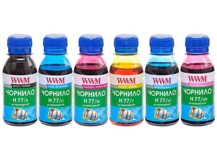 Чернила водорастворимые WWM (H77SET-6) 6х100мл для заправки картриджей HP №177, №84, №85.