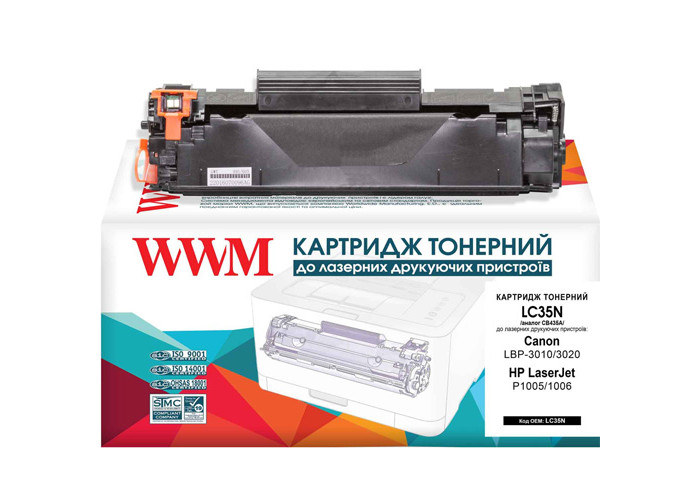 Відновлений тонер-картридж WWM LC35N - аналог Canon 712, HP 35A (CB435A) для принтерів серії Hewlett-Packard LaserJet P1005, P1006, P1007, P1008, LBP-3010, LBP-3020.