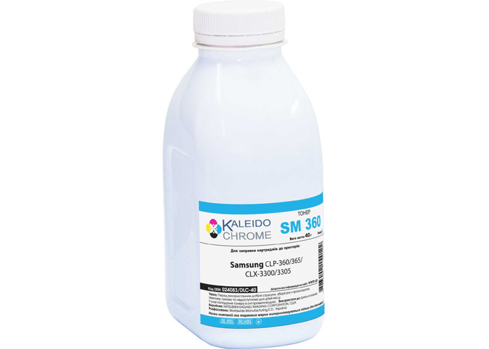 Синій тонер Kaleidochrome 024083/DLC-40 Cyan (40г) для заправки принтерів Samsung CLP-300, CLP-300N, CLP-310, CLP-315, CLP-320, CLP-325, CLP-360, CLP-365, CLP-615, CLP-620, CLP-670, CLP-680, CLX-2160N, CLX-3160FN, CLX-3170FN, CLX-3175, CLX-3185, CLX-3300, CLX-3305, CLX-6220, CLX-6250, CLX-6260, SL-C3010ND, C3060, C410W, C460FW, C460W, Xerox Phaser 6100, Xerox Phaser 6110MFP.